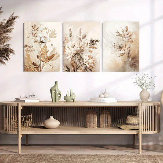 Framed Abstract Beige Floral Leaf Art Print Posters Wall Home Decor