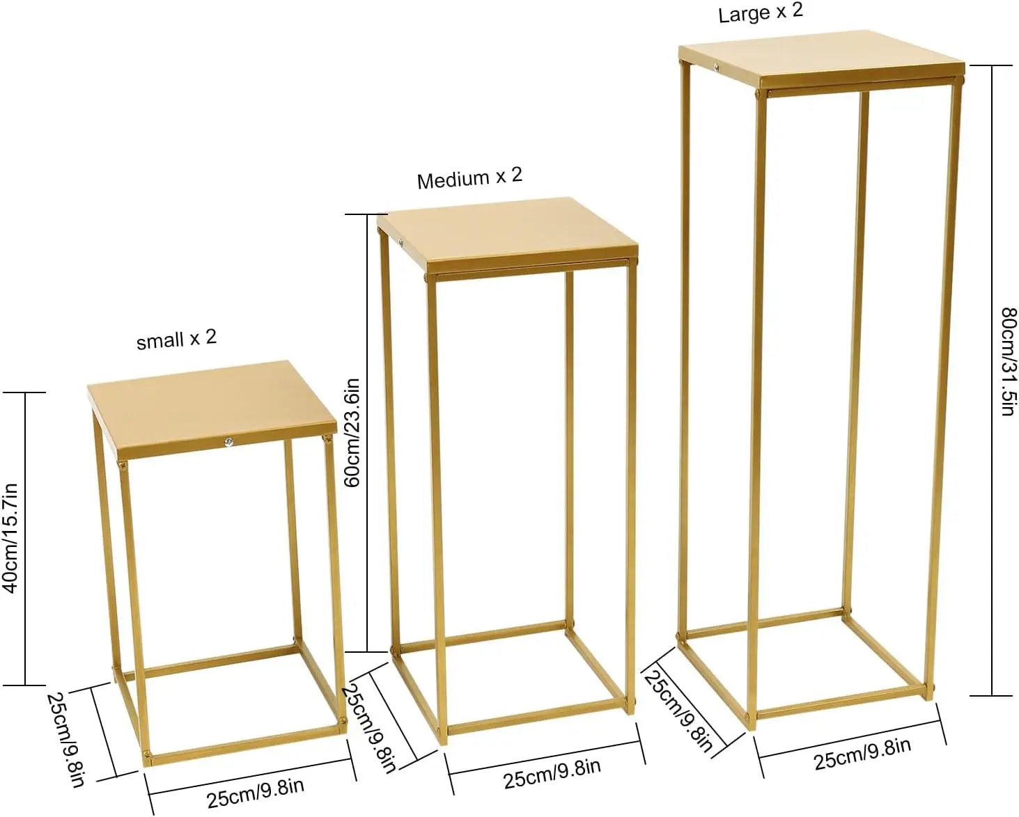 Elevate your wedding or special event with our Gold Floral Stands, designed to display flowers, arrangements, or décor pieces with elegance and style. Perfect for ceremonies, receptions, and photo backdrops, these stands add a luxurious and sophisticated touch to any setting. Durable and stylish, they’re ideal for both professional event planners and DIY decorators.